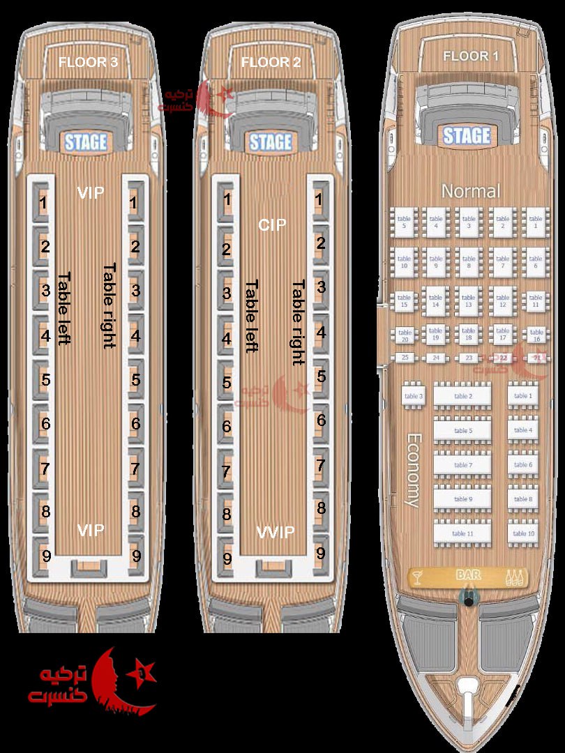 قیمت VIP طبقه سوم هر نفر بزرگسال 105 دلار بچه ۶ تا ۱۱ سال 60 دلار